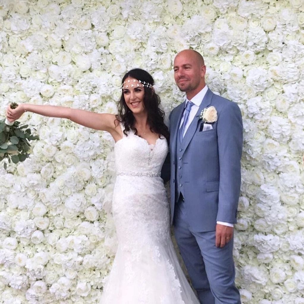 The flower wall is 8ft by 8ft and looks beautiful placed behind a top table or as a backdrop for photographs.